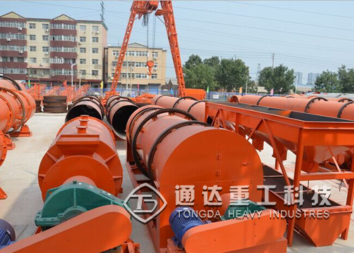 通達重工新研發的有機肥轉鼓攪齒兩用造粒機轉鼓造粒機是一種可將物料制造成特定形狀的成型機械。轉鼓造粒機是復合肥行業的關鍵設備之一,適用于冷、熱造粒以及高、中低濃度復混肥的大規模生產。主要工作方式為團粒濕法造粒,通過一定量的水或蒸汽,使基礎肥料在筒體內調濕后充分化學反應,在一定的液相條件下,借助筒體的旋轉運動,使物料粒子間產生擠壓力團聚成球。該機筒體采用特殊的橡膠板內襯或耐酸不銹鋼襯板,實現了自動除疤、脫瘤,取消了傳統的刮刀裝置。該機具有成球強度高、外觀質量好、耐腐蝕、耐磨損、能耗低、使用壽命長、操作維修方便等特點。濕法攪齒造粒機利用高速回轉的機械攪拌力及由此產生的空氣動力,使細粉狀料在機內連續實現混合,成粒、球化、致密等過程,從而達到造粒的目的。此兩種造粒方式的結合使得所造顆粒成球率更高,顆粒更加美觀,同時節省能源,效率高。